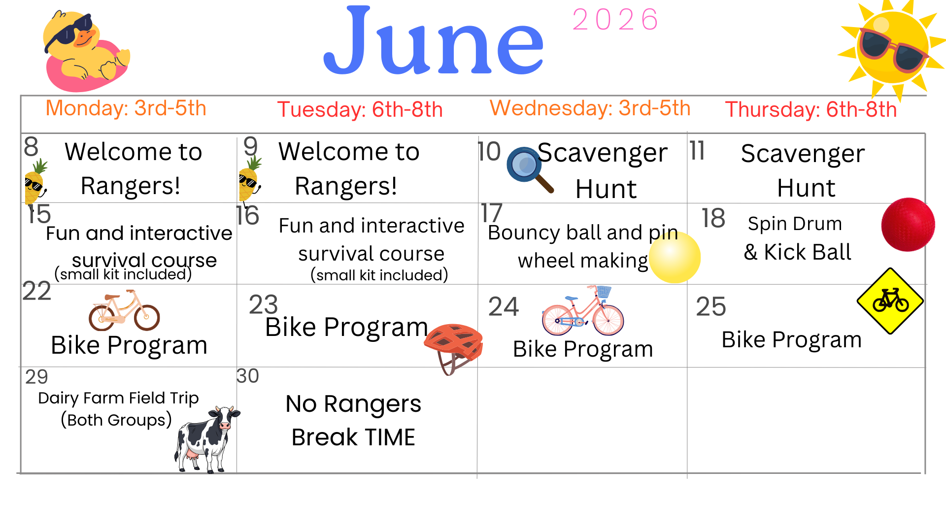 - 3rd-5th Graders - Monday June 8th: Welcome to Rangers